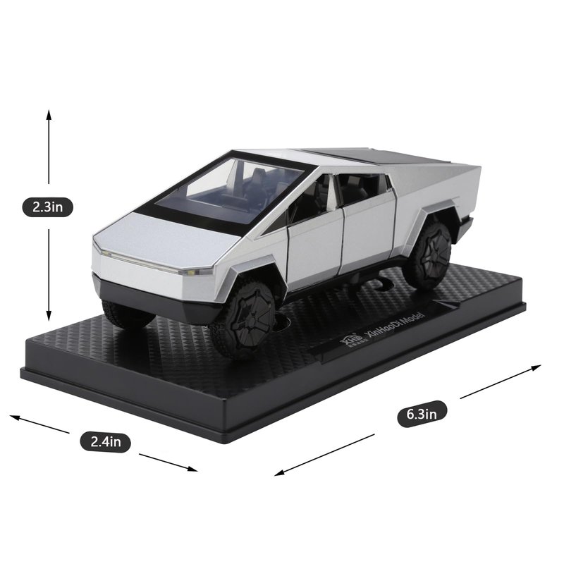 Durable Toy Trucks:Cybertruck Metal model truck, since the truck is die cast, it will withstand lots of rough play time. Very durable toy trucks for boys age 3-5. 1 /32 scale car model with display base,product size: 6.3 x 2.4 x 2.3 inches.
