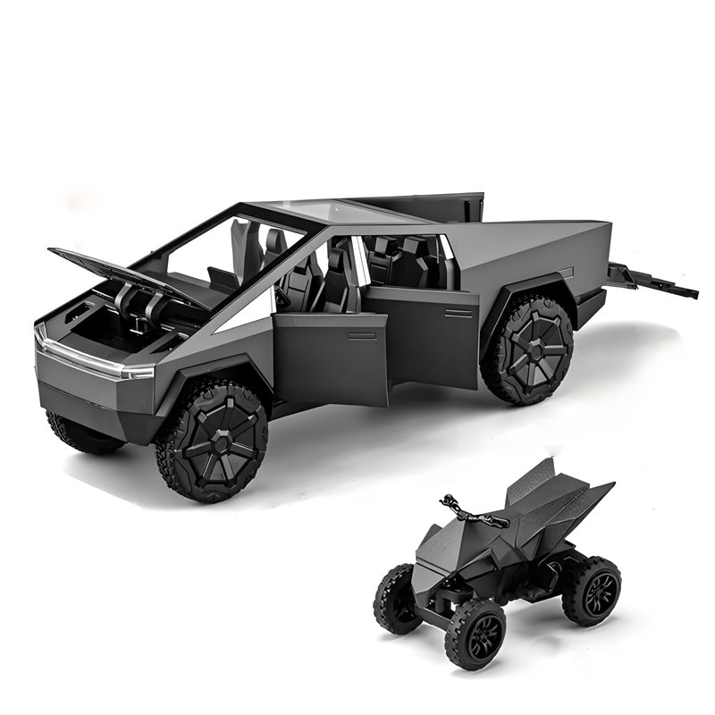 Cybertruck Toy Trucks with Motorcycle Diecast Metal Cyber Truck Model Pickup Truck 1/32 Toy Race Cars with Sound and Light Gift Age for 6 Year Up for Christmas(Grey)