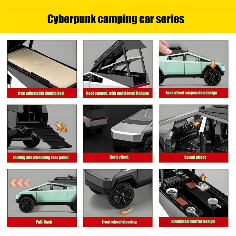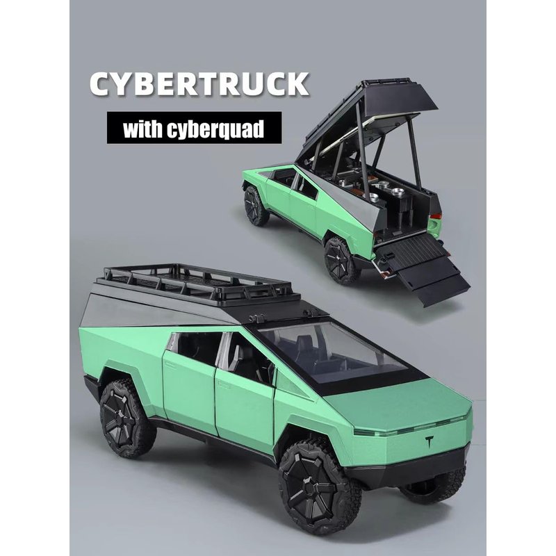 Cybertruck Toy Trucks with RV Motorcycle Diecast Metal Toy Car Model Pickup Truck 1/24 Toy Camper Van with Sound and Light Effect Gift Age for 6 Year Up (Green)