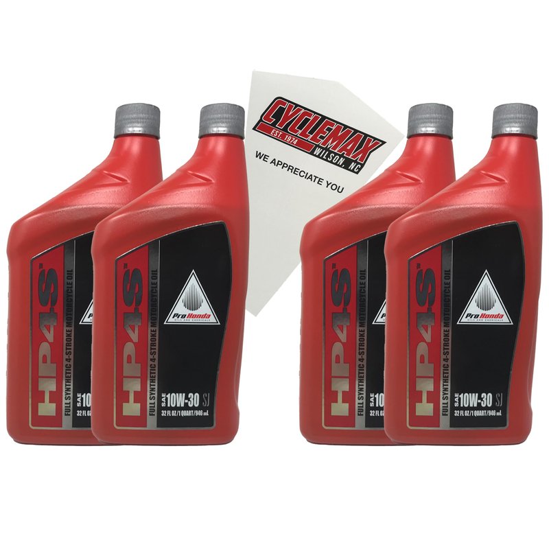 - OUR CYCLEMAX PACK CONTAINS: Four Quarts for Honda HP4S 10W30 Full Synthetic 4 Stroke Motor Oil 08C35-SYN-1030M along with a Convenient Disposable Funnel