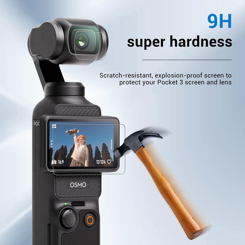 - DJI Pocket 3 Lens Protector Ultimate Protection: With 9H hardness and 0.3mm thickness, these dji osmo pocket 3 screen protectors glass shield your pocket 3 camera's screen from high-impact drops, scratches, and sharp objects.