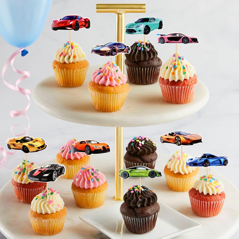 - 🍰 【 Unique Design 】: Cyodoos 48 Pcs Race car cupcake toppers, suitable for various occasions, such as baby shower themed parties. Make any cake that looks ordinary creative. Including birthday parties, festivals, etc., it can also be applied to cupcakes, fruits, biscuits, desserts, cake appetizers, and more baking decorations
