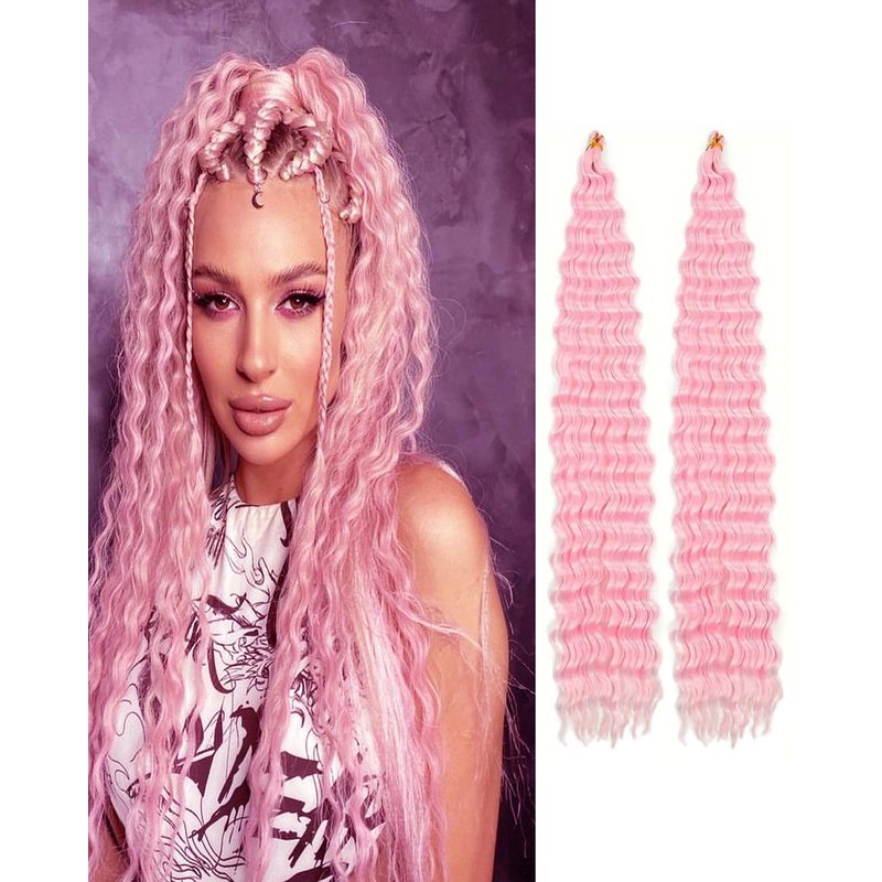 Cypsin Pink Curly Crochet Hair 30Inch 2 Packs Deep Wave Crochet Hair with Crochet Hook, Long Ocean Wave Braiding Hair for Women, Synthetic Hair Curly Braiding Hair Extensions