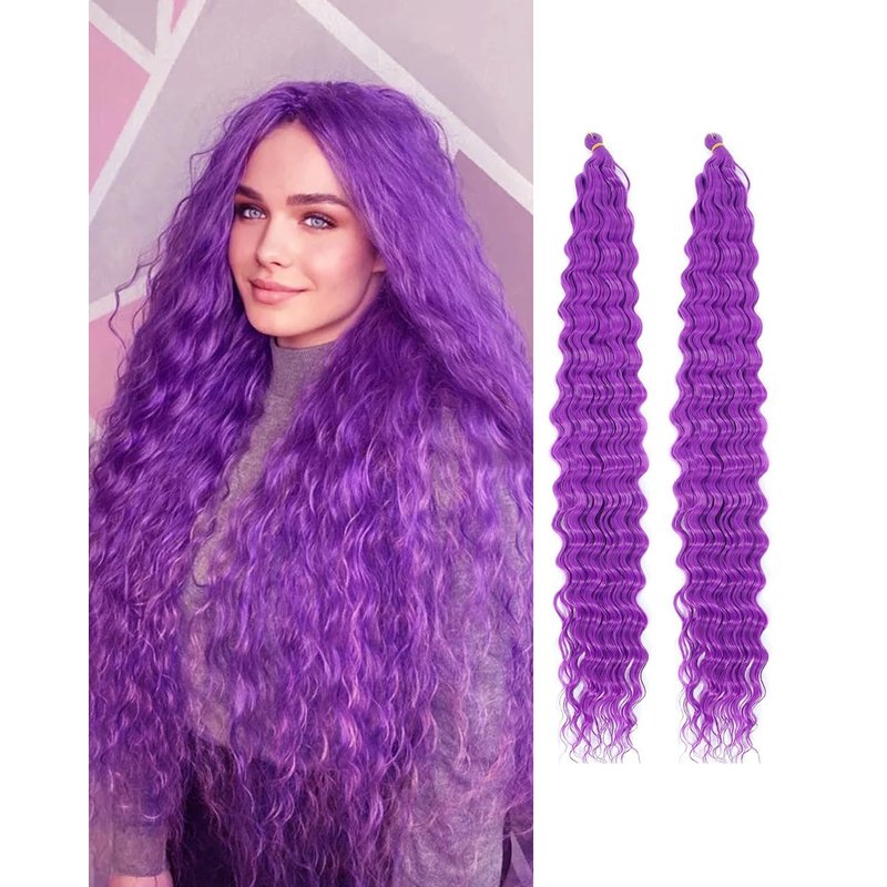 Cypsin Purple Curly Crochet Hair 30Inch 2 Packs Deep Wave Crochet Hair with Crochet Hook, Long Ocean Wave Braiding Hair for Women, Synthetic Hair Curly Braiding Hair Extensions