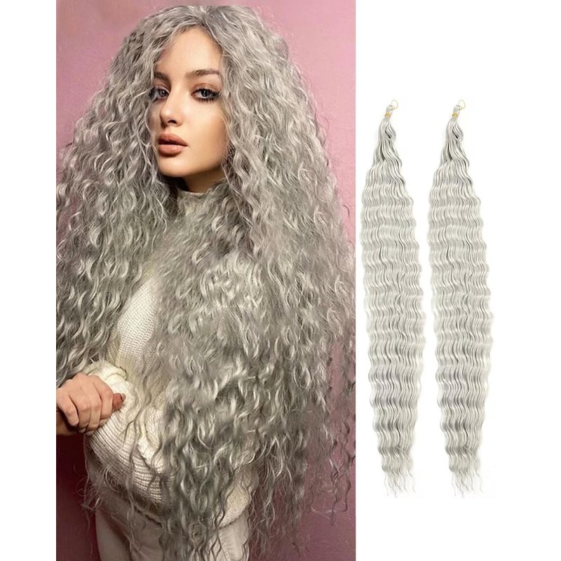 Cypsin Sliver Curly Crochet Hair 30Inch 2 Packs Deep Wave Crochet Hair with Crochet Hook, Long Ocean Wave Braiding Hair for Women, Synthetic Hair Curly Braiding Hair Extensions