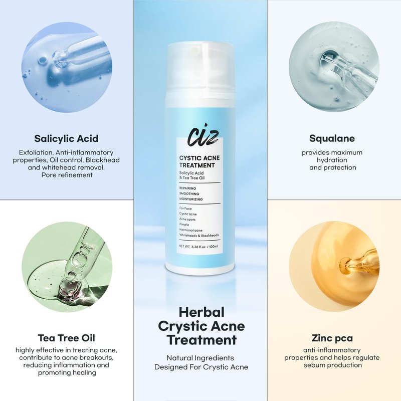 Cystic Acne Spot Treatment for Face: Cystic Hormonal Acne Spot Treatment for Face - Hormonal Acne Pimple Spot Cream with Salicylic Acid & Tea Tree Oil - 100 ml