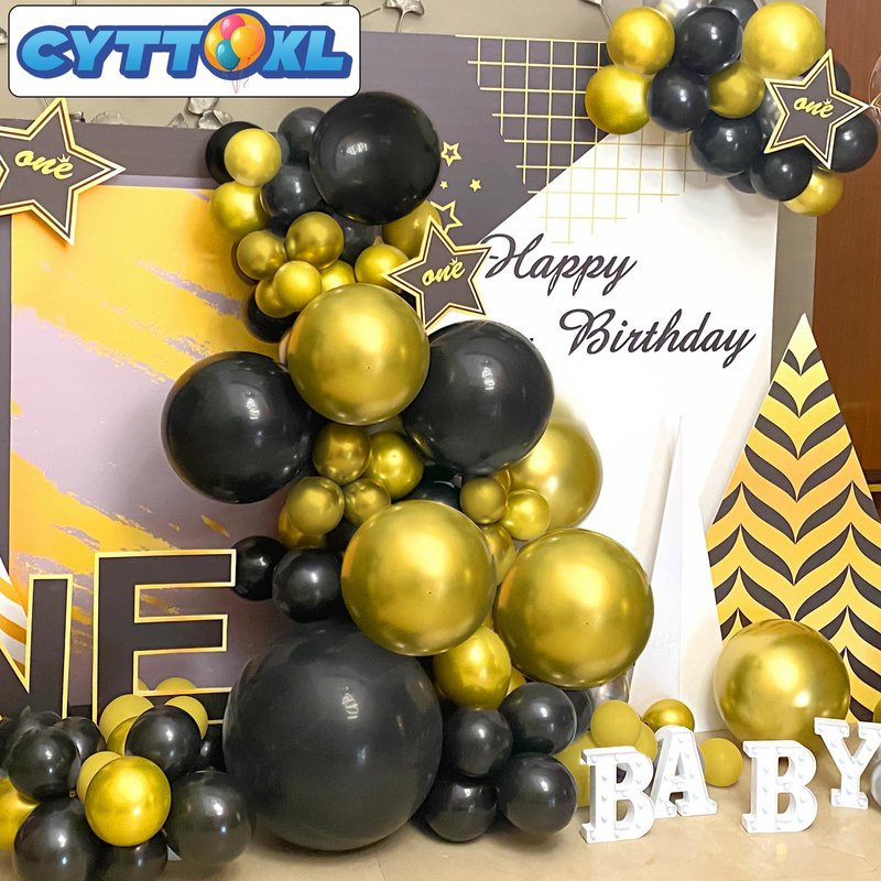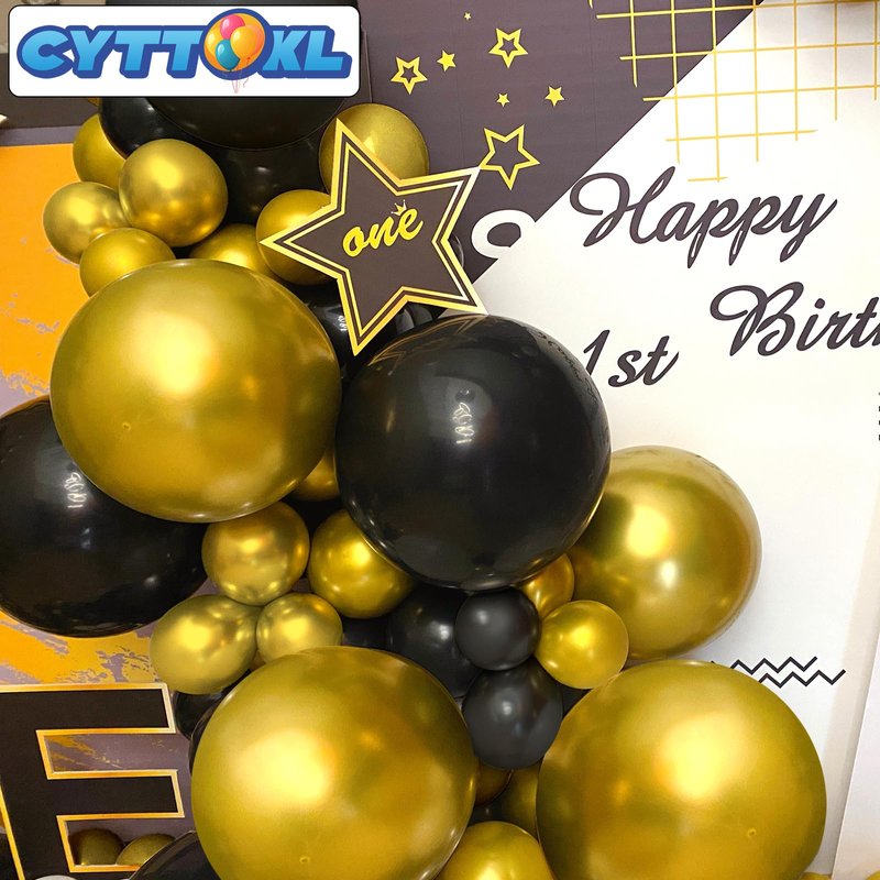 - [Occasions] These vibrant, versatile balloons are ideal for creating striking balloon arches. The black and gold balloon arch is ideal for weddings, bridal showers, baby showers, birthdays, engagement parties, gender reveal events, and more. Whether used as a photo booth backdrop or to decorate indoor or outdoor celebrations, these durable balloons will enhance the atmosphere and ensure a memorable event