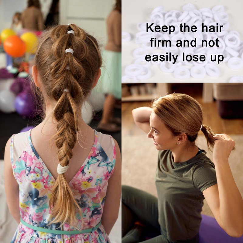 CYWLIFE Tiny Hair Bands, 100 PCS White Hair Ties, No Crease Ponytail Holders, Tiny Soft Rubber Bands for Girls Kids Women Men, 7MM No Hurt Durable Hair Accessories