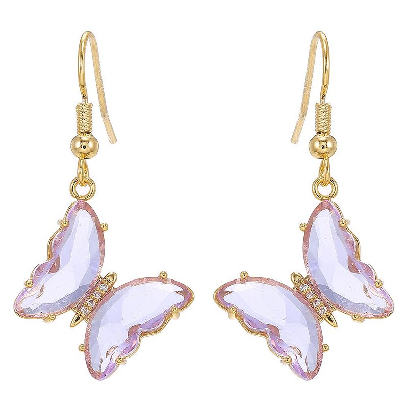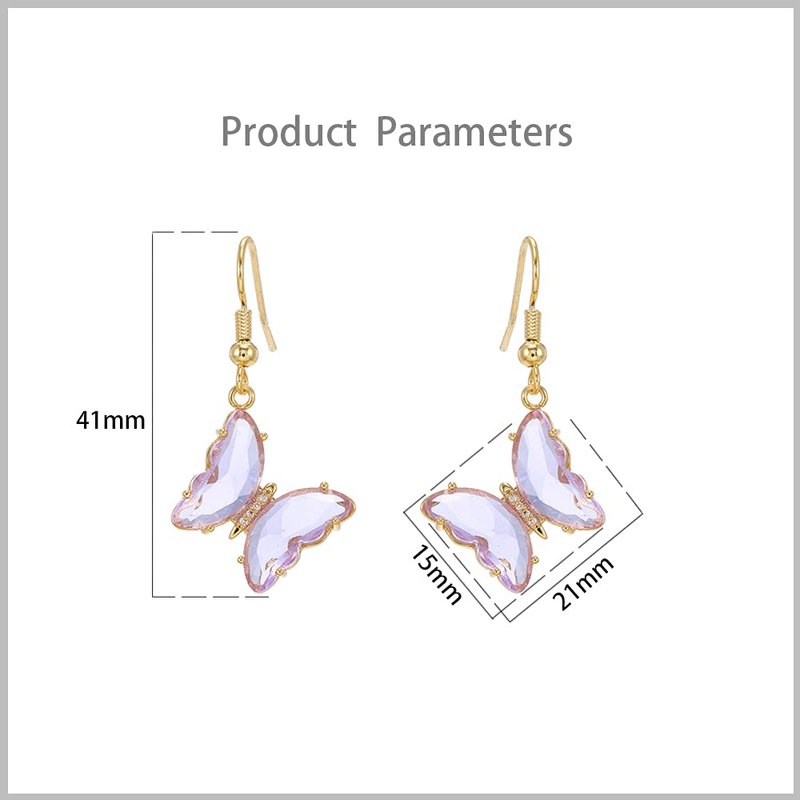 CZ Butterfly Glass Drop Dangle Earrings for Women Teen Girls 925 Sterling Silver Post Pin Cubic Zirconia Gold Plated Hypoallergenic Nickel Free Cute Charms Dangling Stud Earring Dainty Dainty