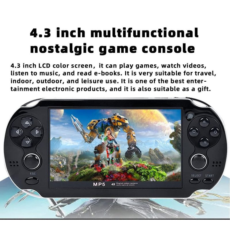 - ※4.3-inch LCD color screen multifunctional nostalgic game console※.the double joystick makes it easier to control the game. it can play games, watch videos, listen to music, read e-books, it is very suitable for travel, indoor, outdoor, leisure use, is one of the best entertainment electronic products, also suitable as gifts.