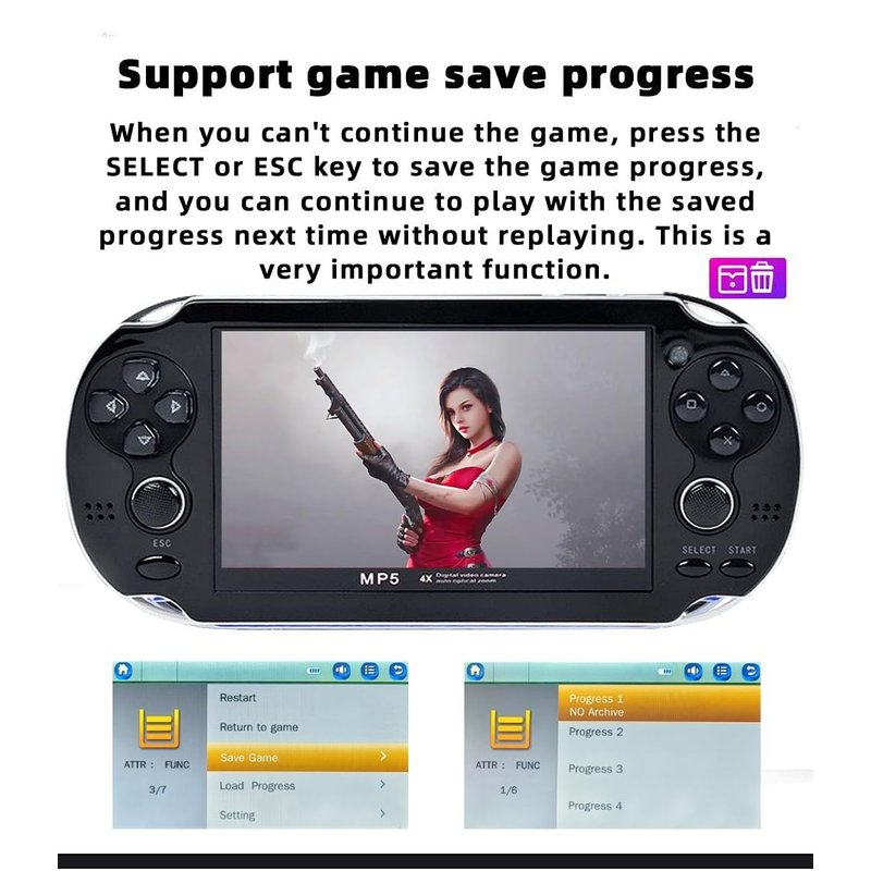 - ※Support game save progress※. When you can't continue playing the game, press the SELECT or ESC key to save the game progress, and you can continue to play with the saved progress next time without restarting. This is a very important function.