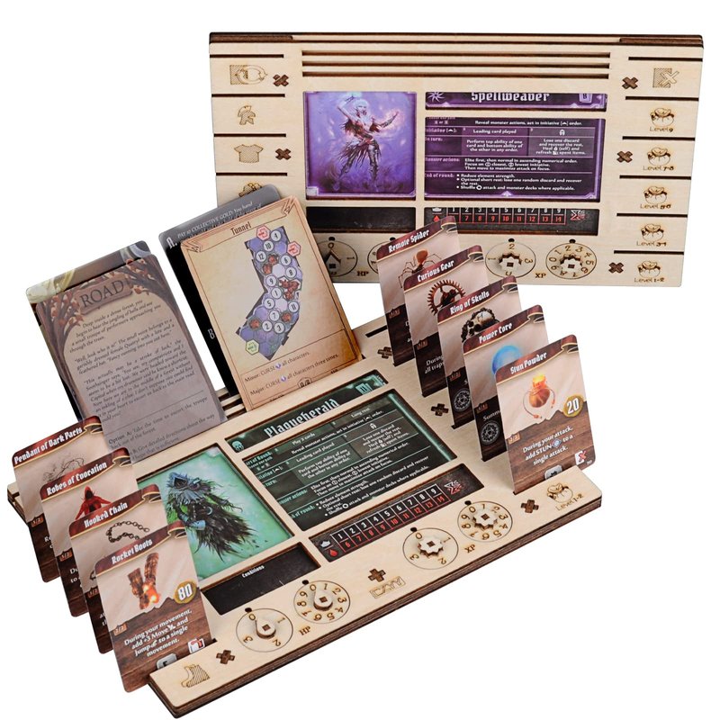 - REDUCE THE CLUTTER - This character dashboard is the perfect solution for managing your character by providing a neat or tidy place. It saves a lot of room on the table and holds pretty much all of the player items. No more table clutter for your characters, just enjoying the fun of Gloomhaven!
