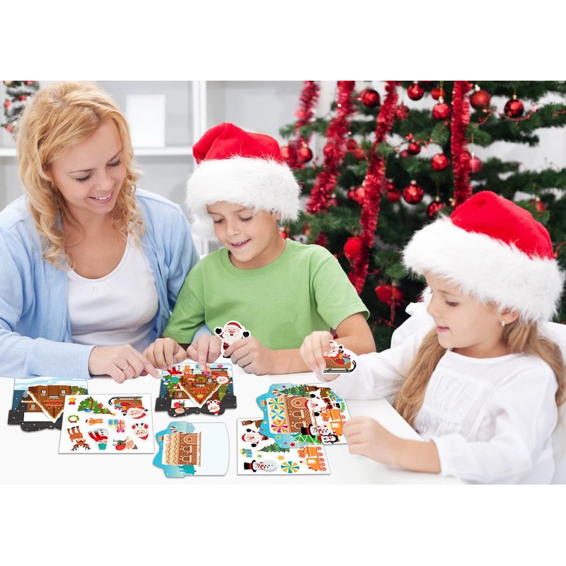 D24TIME Winter Christmas Craft Kit 24pcs DIY Christmas Tree Ornament Christmas Gingerbread House Craft Sticker Make Your Own Christmas Crafts Project for Home Classroom School Game Activities