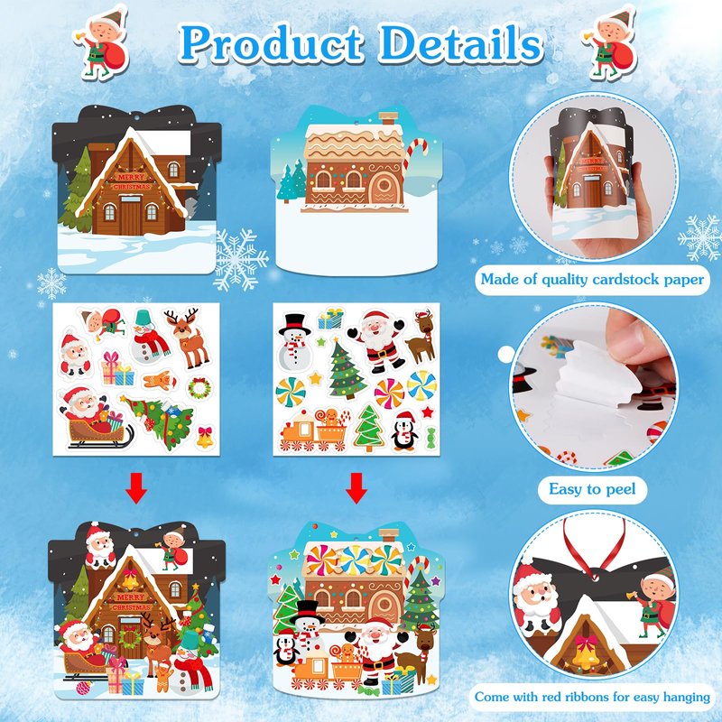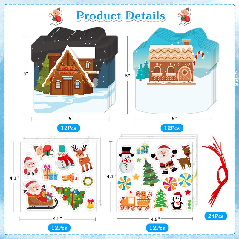 - 【DIY Christmas Craft Kits】: Our Winter Craft Kit is designed to ignite children's imagination and artistic flair. Package with 24 gingerbread house-themed craft hanging ornament cards, 24 sheets self adhesive stickers and 24 red strings for hanging, this DIY craft kit empowers kids to create their own Christmas decorations, ornaments, and Christmas stickers for crafts, making it the ultimate arts and crafts supplies. Unleash their creative potential!