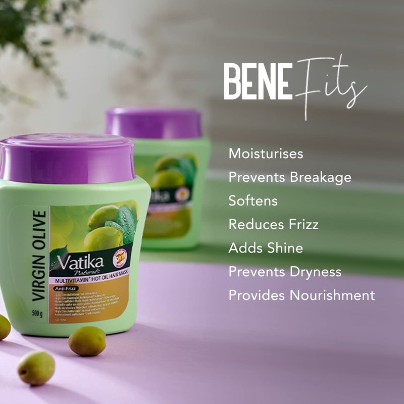 - INTENSE MOISTURIZATION: Infused with the goodness of olive, Dabur Vatika Naturals Hair Mask provides intense moisturization to your hair. It deeply hydrates each strand, replenishing lost moisture and combating dryness. Pamper your hair with this moisturizing hair mask for a silky, hydrated, and rejuvenated mane.