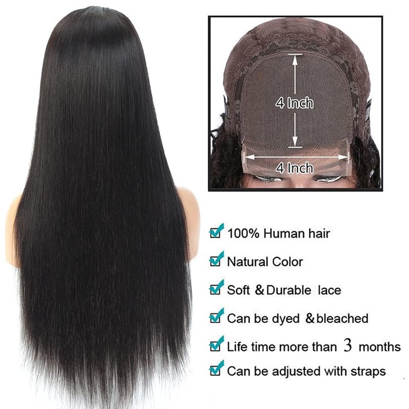 - Brazilian Straight Human Hair wigs, 4x4 Lace Front Wig Made from 100% Brazilian Virgin Human Hair. Healthy and Clean, No Lice.