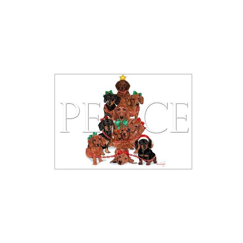 Celebrate the joy with friends and family with these caring and adorable Dachshund Christmas Cards Peace. Each Holiday Card has the inside saying "Wishing you peace and joy this Christmas season and throughout the New Year."
