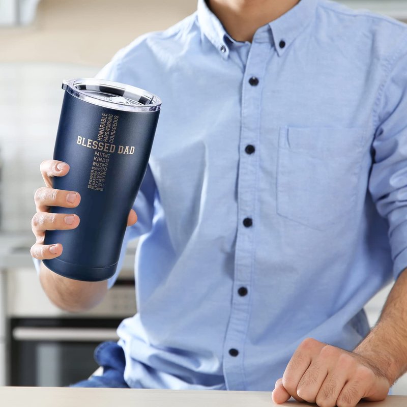 - 👨 IDEAL SIZE & DOUBLE WALL VACUUM INSULATION: This 20oz insulated tumbler is the perfect dad mug for fathers birthday gift, husband birthday gifts to keep his favorite drinks fresh! Using the double-wall vacuum insulation technology, we ensure to keep your favorite hot drinks steaming and cold beverages icy for hours and won't sweat like lower quality tumblers. The clear BPA free press in lid also helps to minimise spills and keep your drink at the right temperature and transparent from above