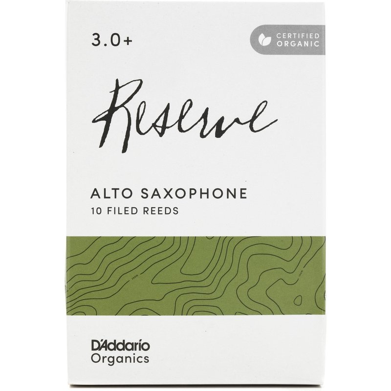 D'Addario Organic Reserve Alto Saxophone Reeds - Sax Reeds - The First & Only Organic Reed - 3.0+ Strength, 10 Pack