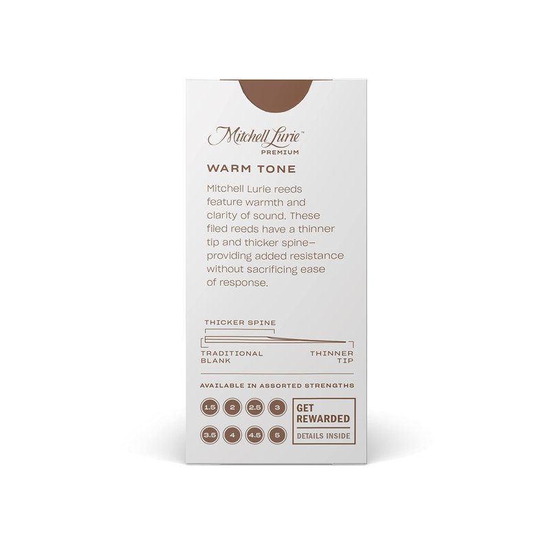 D'Addario Woodwinds Mitchell Lurie Premium Bb Clarinet Reeds - Filed, Featuring Thinner Tip, Thicker Spine - Strength 2.5, 5-Pack