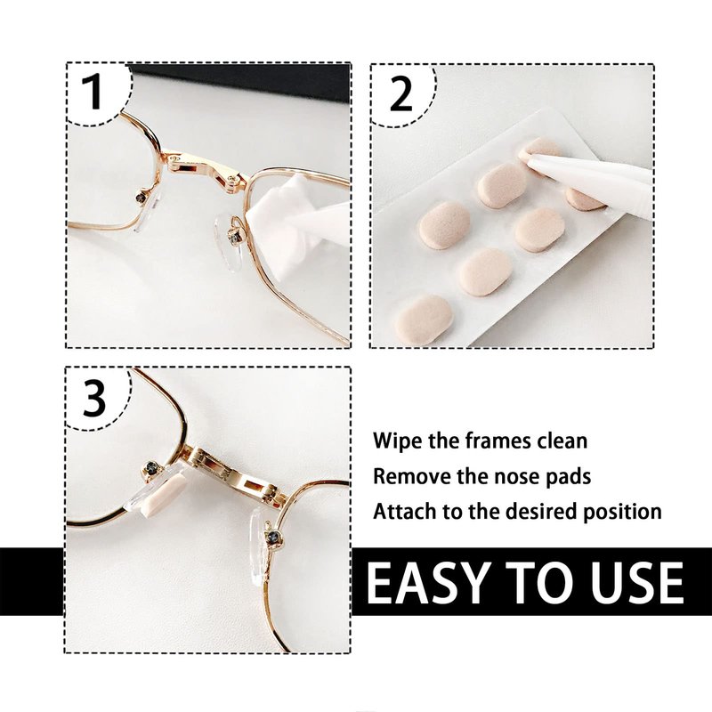 - 【Easy to use】After cleaning the frame, just peel off the self-adhesive nose pads from the paper and stick them on the part of the frame that needs support. If you want to replace the eyeglass nose rest, just use your fingers to gently lift it from the frame together with the bottom sticker.