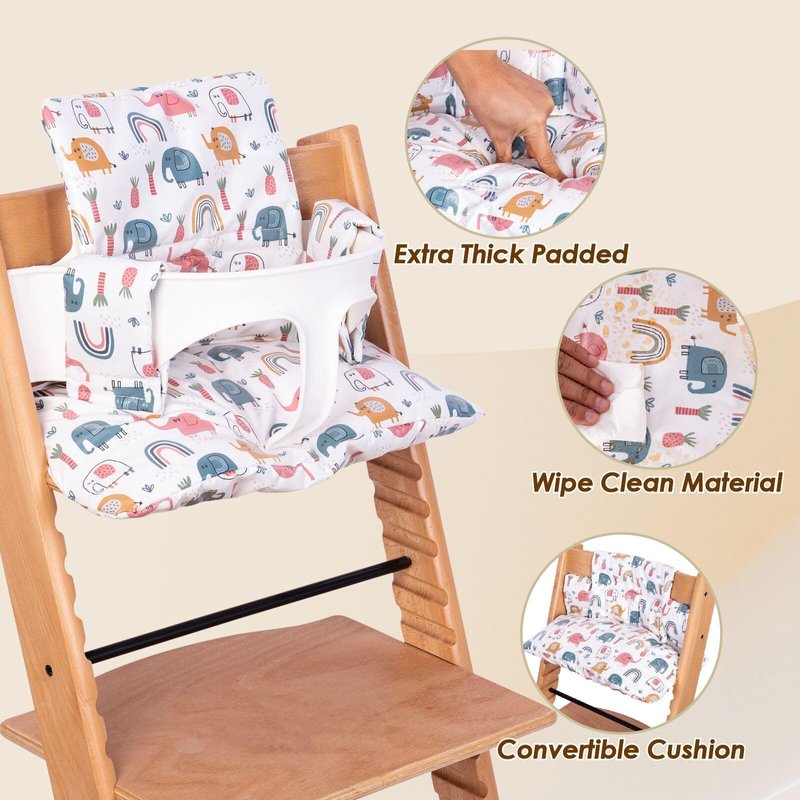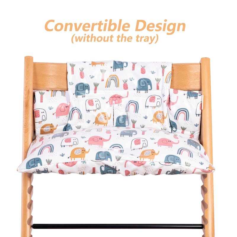 DADOUMAN Waterproof & Extra Padded Dining Chair Seat Cushion, Wipe Clean Cushion for Stokke Tripp Trapp High Chair, 18" L x 11" W, Cartoon Printing Each (Colorful Elephants)