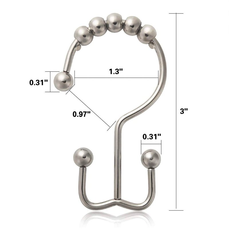 In order to prevent the water from leaking out of the shower or tub, and splashing out onto the floor, these double shower curtain hooks are helpful for controlling the curtain and liner. A set of 12 durable shower curtain hooks will keep your shower curtains from falling. The five smooth roller balls on each hook can reduce friction and ensure the hook glides effortlessly. Perfect for most standard shower curtain rods. Hang Both a Shower Curtain and a Liner Hang your waterproof shower liner on the inside of the hook and a decorative curtain on the outside with ease. This dual design makes it handy to remove the shower liner for washing without needing to remove the outside shower curtain. Rust-resistant Shower Curtain Hooks Made from rust-resistant metal material, these shower curtain rings are not only more durable than standard hooks, but also coordinate well with various styles of liners and curtains. Set of 12 Friction Free, Easy Glide Easy to Install Polished for an attractive style Fit most standard sizes shower curtain rods