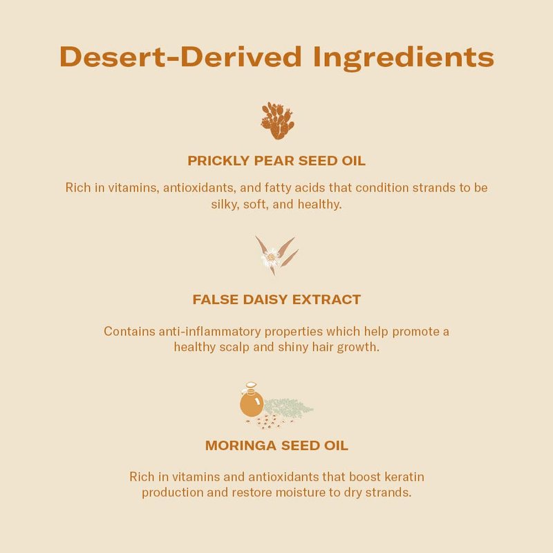 - KEY INGREDIENTS - False Daisy Extract: Helps promote a healthy scalp & shiny hair growth. Moringa Seed OIl: Helps boost keratin production and restore moisture to dry strands. Prickly Pear Seed Oil: Conditions strands to be silky, soft, and healthy.