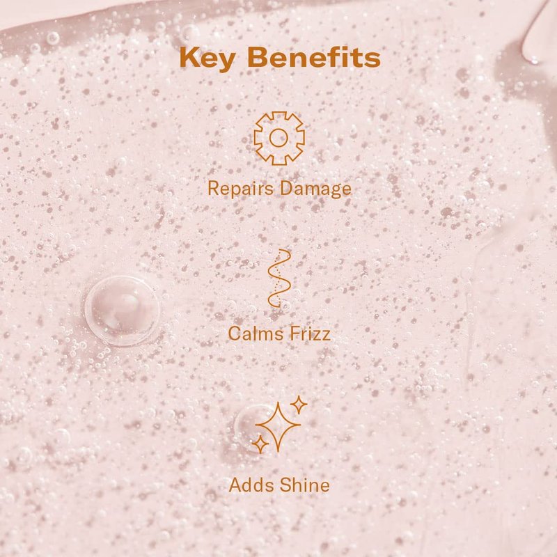 - BENEFITS - Adds shine, calms frizz, and repairs damage.
