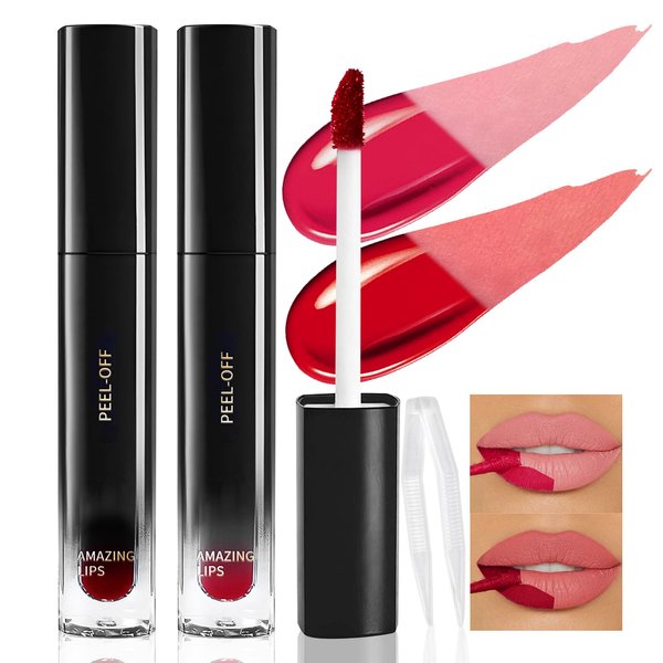 DAGEDA 2 Colors Peel Off Lip Liner Stain Set, Tattoo Color Lip Tint Stain, Long Lasting and Waterproof Lip Stain Peel off Lip Makeup,Peel Off Lip Liner with Natural Matte Finish (01+03)