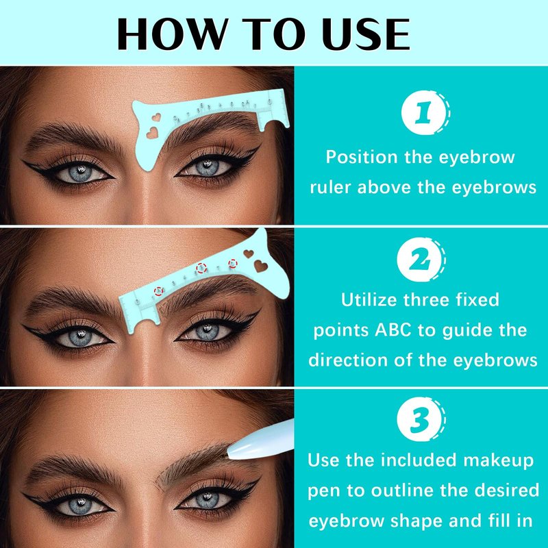 - EASY TO USE:This eyebrow template is user-friendly. To begin, position the product above the eyebrows and utilize three fixed points ABC to guide the direction of the eyebrows. Outline the desired eyebrow shape and then use the included makeup pen to fill in and define the brows. It is very friendly for beginners to create a perfect eyebrow shape and eyeliner.
