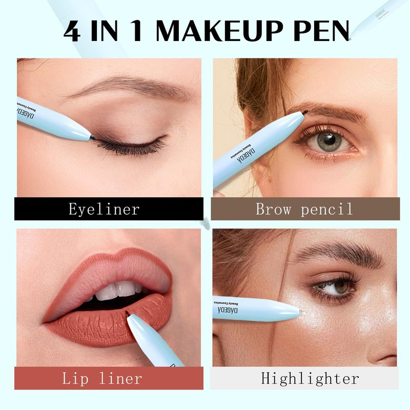 2. The makeup pen with four colors has various functions. Easily create perfect eyebrow makeup, eye makeup, lip makeup and highlighter makeup in a short time.