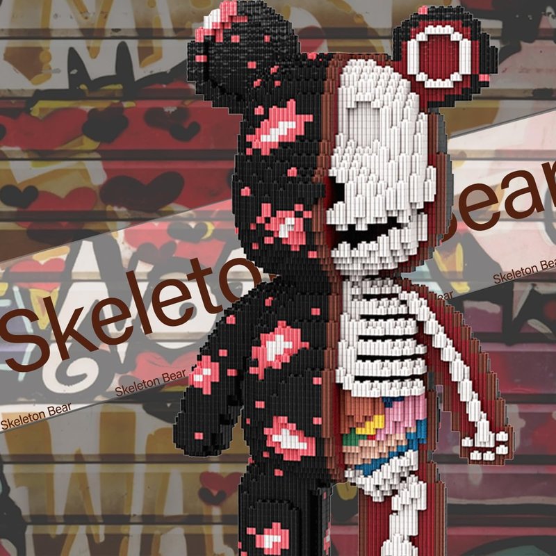 - Bear Building Blocks: The Graffiti Skull Bear Building Blocks are a creative art assembly model that combines the image of a black bear with gorgeous fireworks elements and skeleton design. Half of the model shows the vivid image of the black bear and the colorful fireworks pattern, while the other half reveals the internal bone structure of the black bear, adding a sense of fantasy and technology to the model.