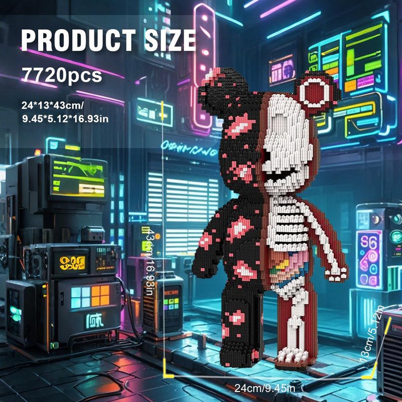 DAHONPA Animal Graffiti Skeleton Bear Micro Building Blocks Set(7220PCS), Gift for Adults and Kids