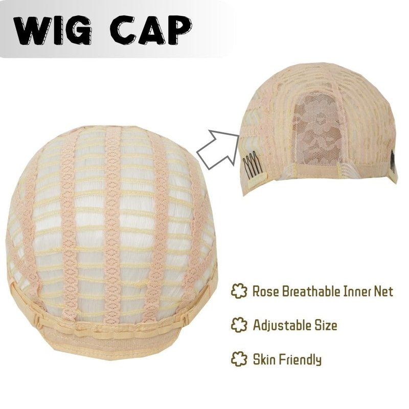 - Wig Cap -We use breathable rose net and 2 adjustable straps to the wig cap to help the wig fit perfectly on the scalp.