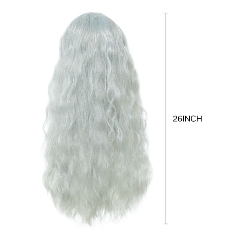 Dai Cloud Grey Long Curly Wavy Wigs for Women Wave Wig with Bangs Natural Looking Synthetic Heat Resistant Hair Wigs Cosplay Halloween Costume Wig