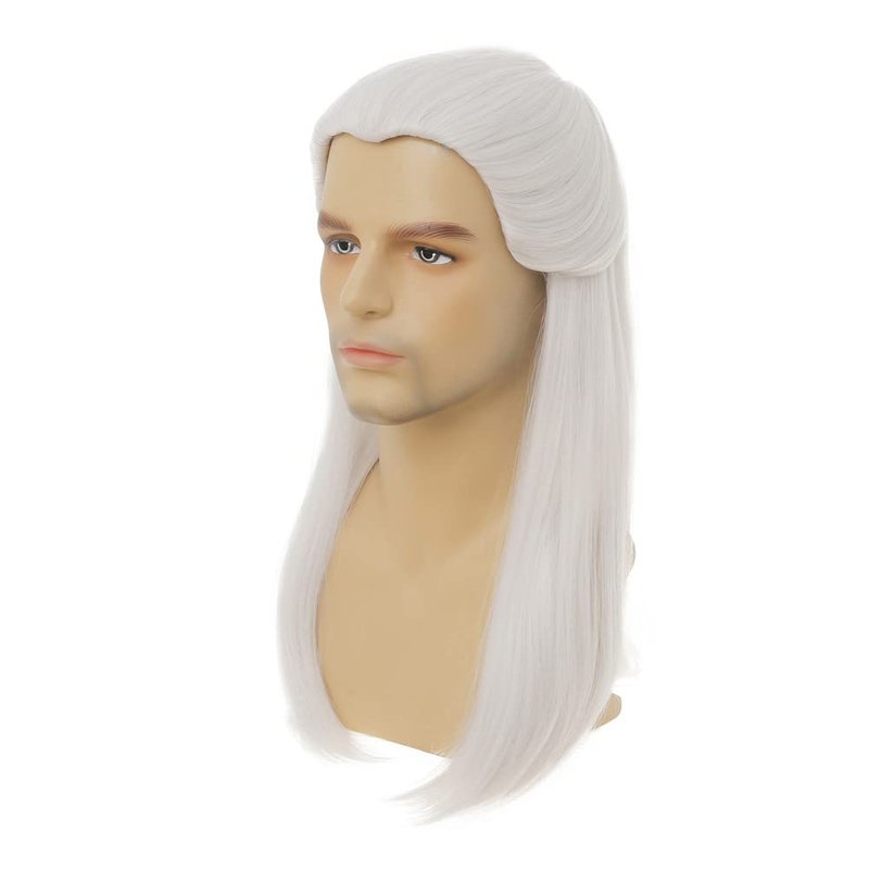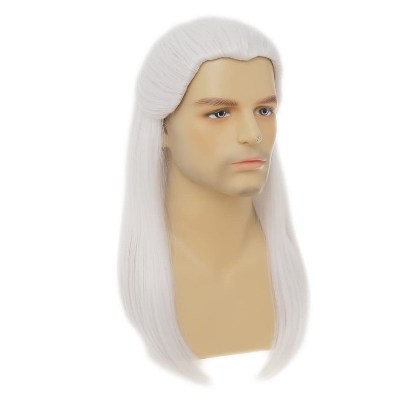 Dai Cloud White Straight Wigs for Men Halloween Costume Wig Long White Straight Male Hair Cosplay Anime Wig for Party