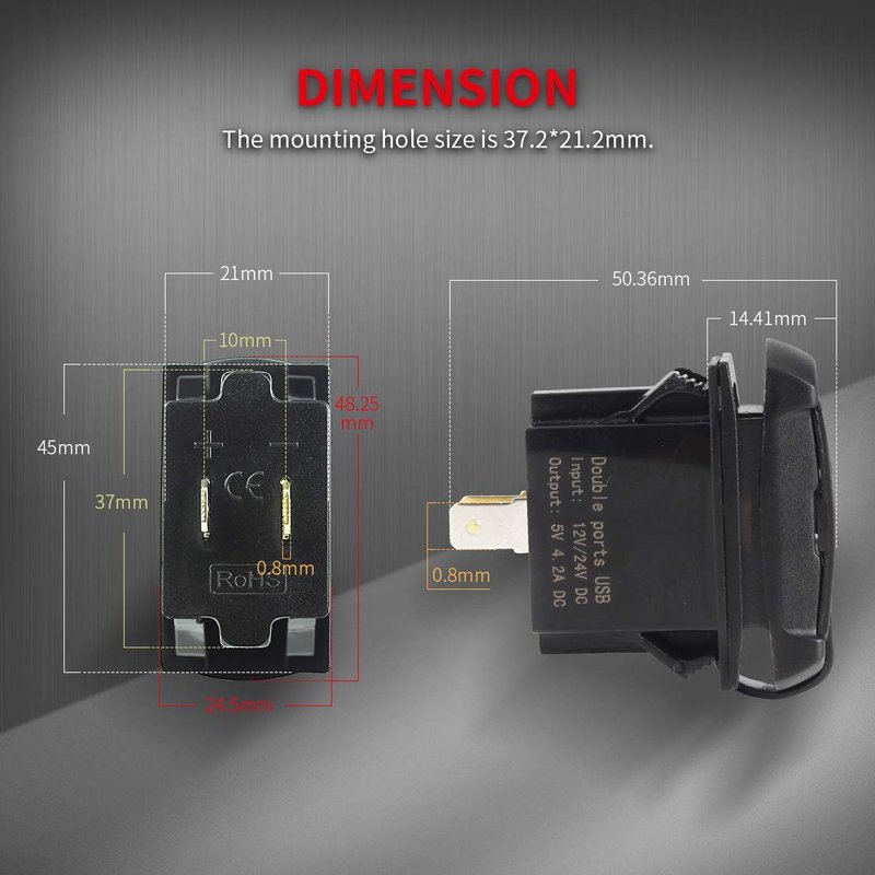 - Material: USB car charger adapter socket is made of ABS material.This marine usb rocker swtichmaterial is flame retardant and environmentally friendly.Works even in high or low temperature environments.The cover is made of rubber material the voltage also can be read when the cover is engaged.