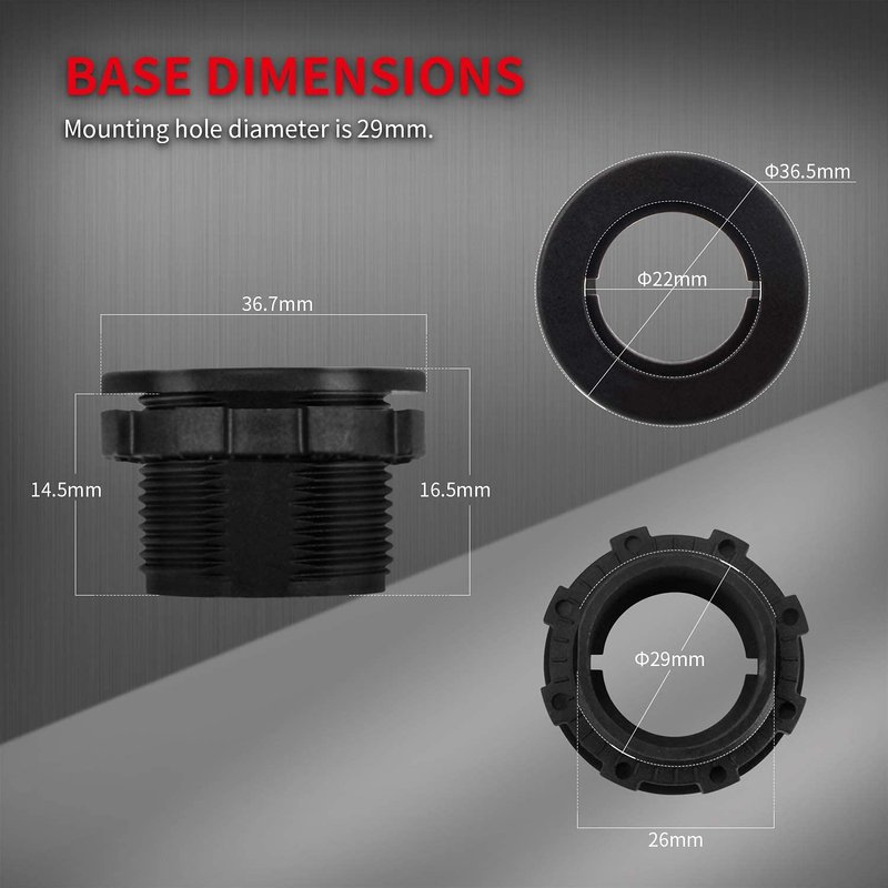 - Installation: The mounting hole size of the round rocker switch shell is 29mm (about 1.14 inches), if you remove the shell, the mounting hole size will be 20mm (about 0.79 inch).