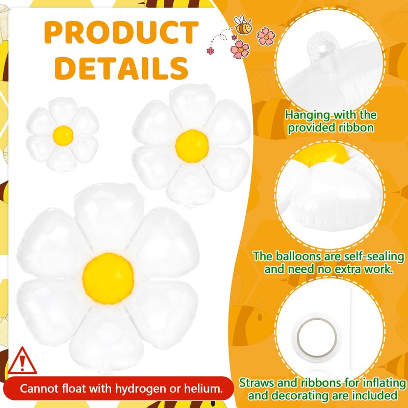 - PREMIUM MATERIAL UPGRADE: Made from high-quality aluminum foil, these balloons feature a metallic sheen, they are safe, environmentally friendly, and reusable. Note: Daisy balloons do NOT float when inflated with helium.