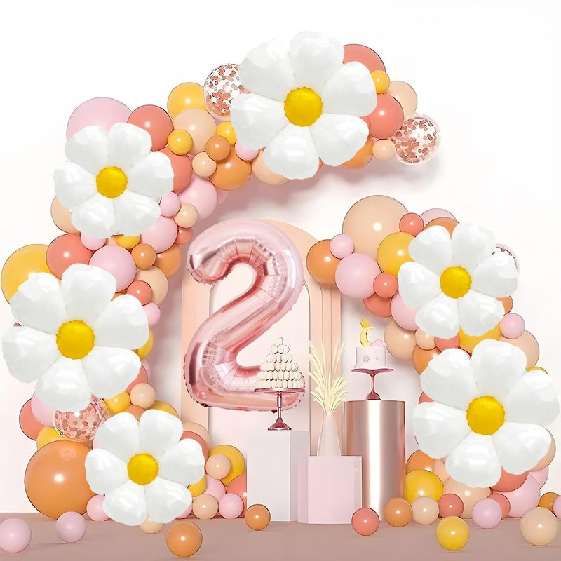 - 【Daisy Balloons Set】Pack of 7 daisy birthday decoration, include 40 inch rose gold number 2 balloons 1pcs, 30.7×26.7 inch daisy balloon 4pcs, 19.7×16 inch daisy balloons 2pcs. Our decorations are adorable with the daisy theme elements. Celebrating your baby girl's 2st birthday with this two groovy birthday party decorations, she would surely love it.