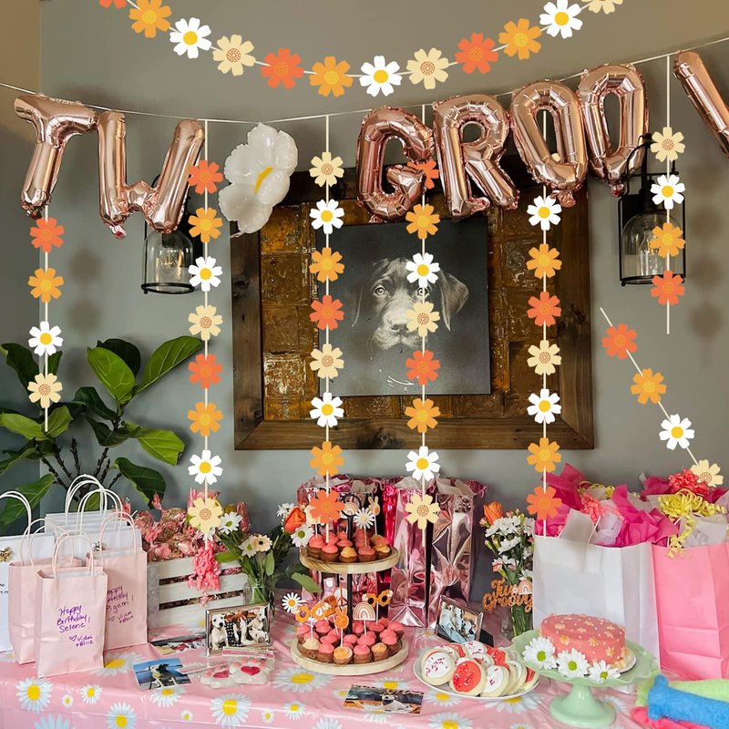- Delicate Design: These classically styled groovy Daisy Hanging banners ,come in different color such as white, yellow, orange and more,matched with bright colors,cute and lovely, using them to decorate your party or home will be more attractive and eye catching.