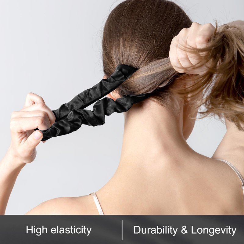 - THICKENED ELASTIC HAIR RING: A universal hair tie size, the silk hair tie has great stretch and holds your hair well.