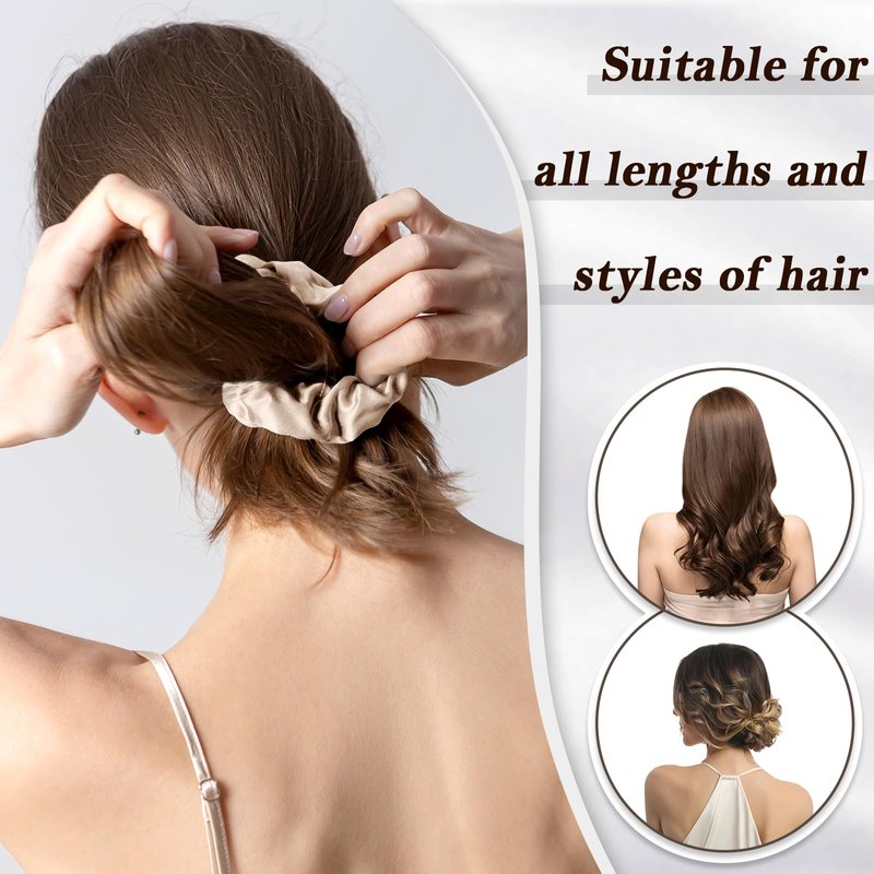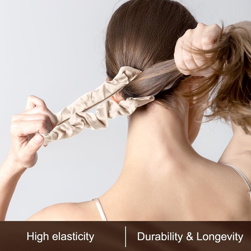 - MULBERRY SILK SCRUNCHINES: The hair scrunchines is made of 100% silk. The static electricity of silk is lighter than other fabrics. Therefore, the silk hair scrunchies can reduce the friction between the hair and the hair scrunchies and reduce hair damage.