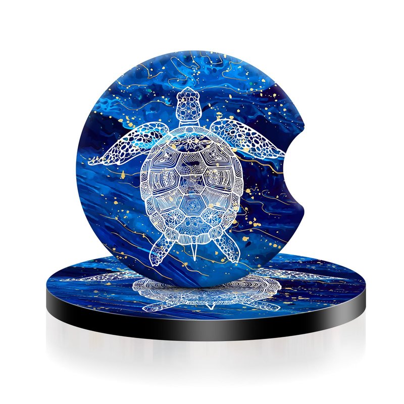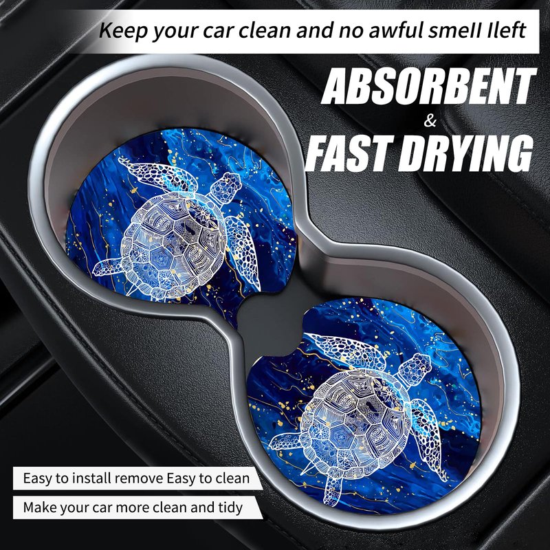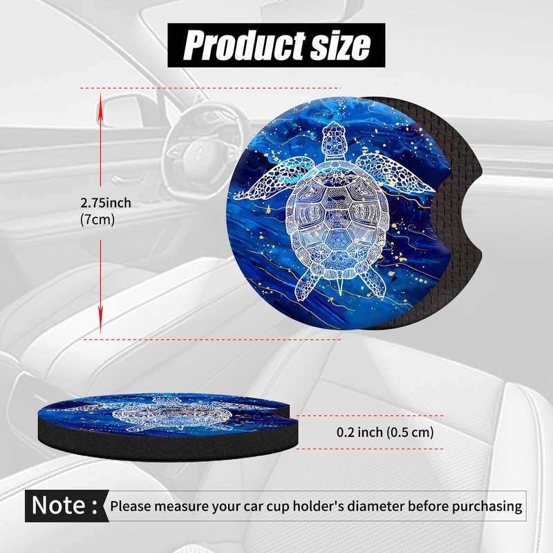 DAIWUGOU 2 Pack Car Cup Holder Coasters Sea Turtle Car Coasters for Cup Holders Anti Slip Rubber Car Cup Mat with A Finger Notch Fashion Car Interior Accessories Drink Coaster for Women Men 2.75 Inch