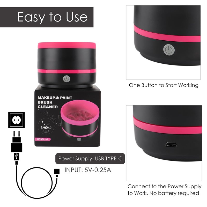 - ✔️ Easy & Worry-Free Operation: One button to remove cosmetics residue, suitable for various fiber makeup brushes. The makeup puffs can also be easily cleaned. There is no need for assembly or batteries, just simply connect the USB plug and press the button to start.