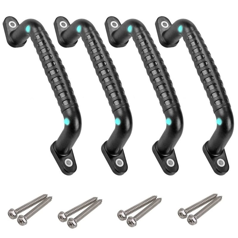 Dakzhou 4 Luminous Playground Safety Handles, Sturdy Swing Sets Safety Grab Toys, Jungle Gymnastics and playroom Ladder Handles, Door Handles, bunk Bed Handles (Black)