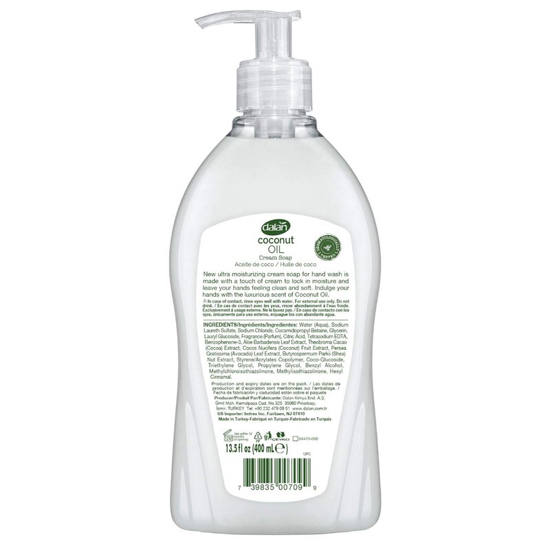 Dalan Coconut Oil Cream Ultra Moisturizing Liquid Hand Soap for Normal and Dry Hands Fresh Clean and Soft Feeling (13.5 Fl Oz / 400 mL (Pack of 1))