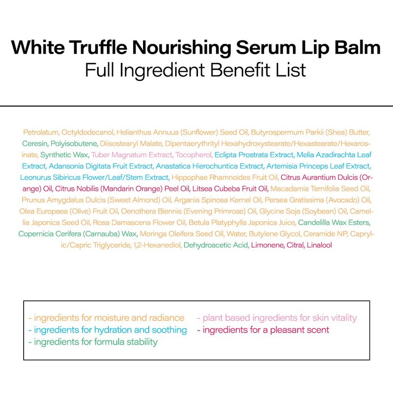 - Including d'Alba's signature oils - olive oil, macadamia seed oil, avocado seed oil, etc brings deep moisturization and nourishment to the lips.