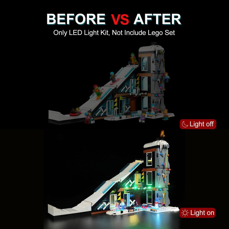 - 🎁【Best Gift Choice】Lego City Ski and Climbing Center light kit set is the best gift choice for kids or building block players who are interested in DIY, it can make your model become a fascinating and cool display, bring players a colorful and interesting exploration experience.